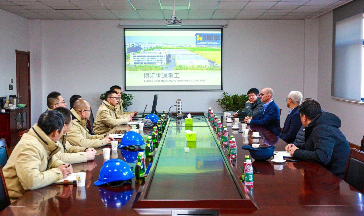 1月23日,卡特彼勒集團(tuán)總裁Tony Fassino、卡特彼勒高級(jí)副總裁楊程建、卡特彼勒中國(guó)運(yùn)營(yíng)部副總裁馬建平、卡特彼勒挖掘事業(yè)部采購(gòu)經(jīng)理汪銳、李宗玉等一行5人蒞臨博匯世通東環(huán)廠區(qū)考察訪(fǎng)問(wèn)。博匯集團(tuán)董事長(zhǎng)付健,博匯世通總經(jīng)理付子一等領(lǐng)導(dǎo)全程陪同。