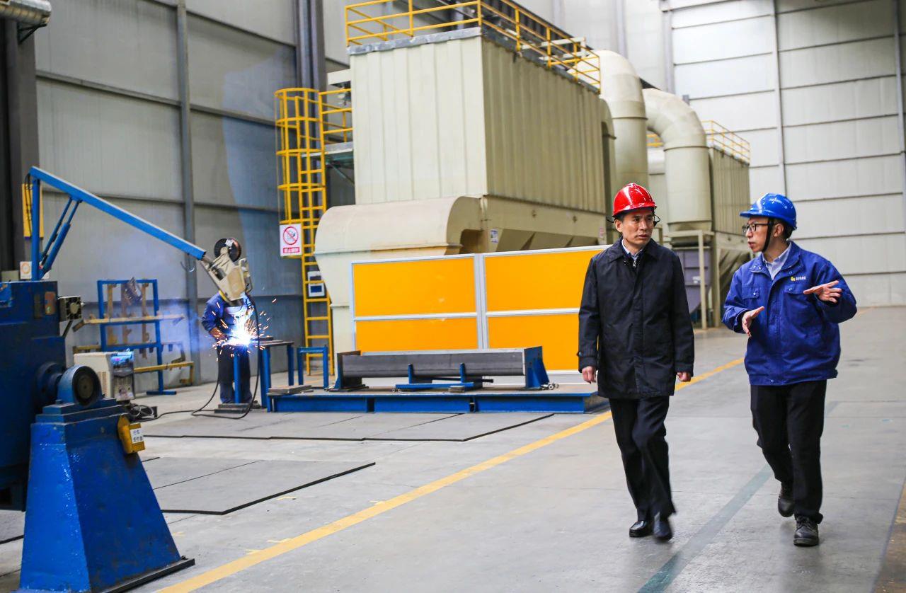 隨后,畢于瑞參觀了東環(huán)廠區(qū)車間生產(chǎn)現(xiàn)場,詳細(xì)了解公司配重焊接機(jī)器人生產(chǎn)線、水性漆自動噴涂生產(chǎn)線的生產(chǎn)工藝等情況。